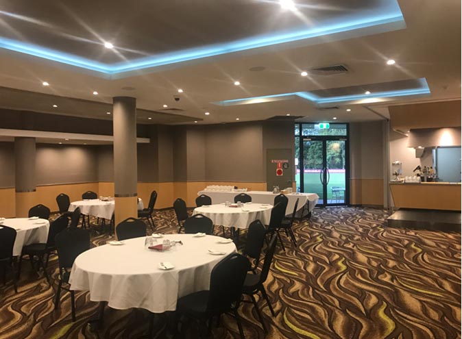 The venue allows lots of natural light in through their multiple glass windows, with great views of the NRL Women’s teams training ground. All rooms can be opened into ONE MASSIVE ROOM, which can host 150 banquet style or 200 cocktail style party.