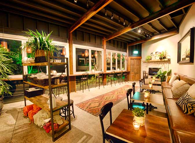 hundred acre bar embraces its unique sense of place next to nature and is a total sensory experience that starts with a rustic home-away-from-home décor, refreshing easterly breezes and elevated 180 degree views of the rolling green fairways.