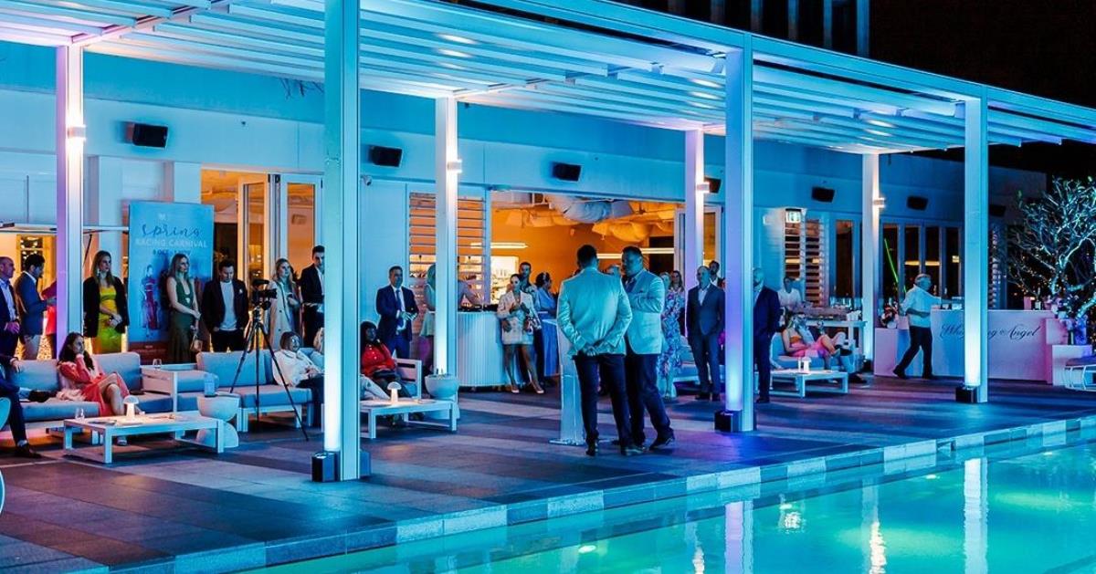 Capacity depends on the event style (standing cocktail setup or seated arrangement). As it is a rooftop pool area, guest numbers may vary. Exact details should be confirmed with the venue team.