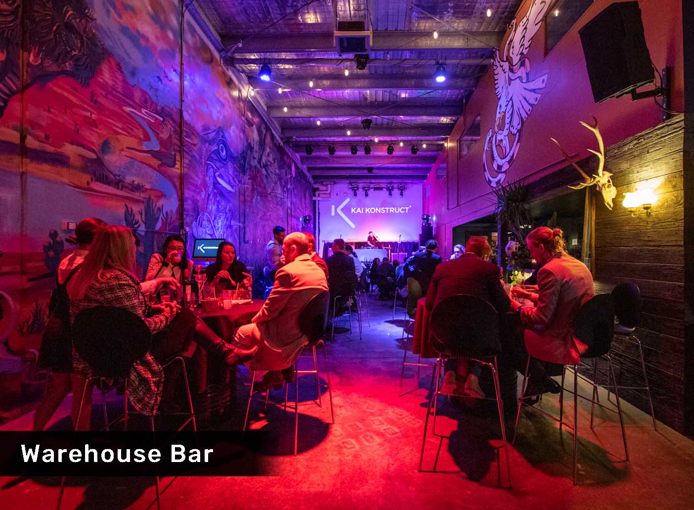 Mo’s warehouse space is the OG party space – colourful, loud and fun with a huge stage for entertainment and a dance floor to host 150 people.