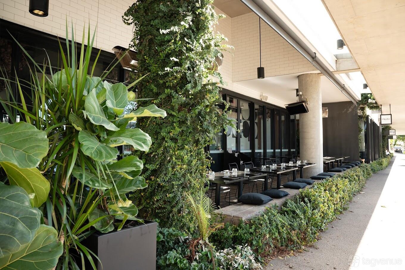 It’s a semi-private outdoor event area — a courtyard setting with a mix of elegant and relaxed ambience, ideal for celebrations, gatherings and casual functions in a leafy al-fresco environment next to the restaurant.