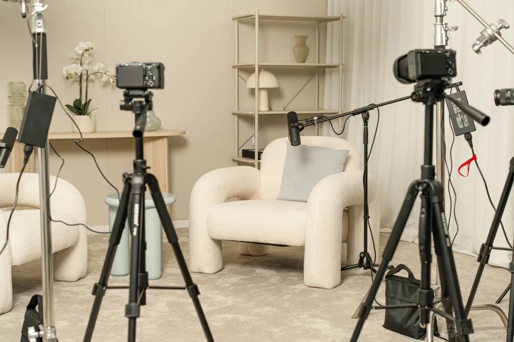 Customisable studio space designed for video podcasts, branded content, interviews, and creative shoots. Featuring a cyclorama wall, multiple styled sets, luxe neutral interiors, and premium lighting and sound, it’s built for creators, brands, and businesses who want their content to look and feel world-class.