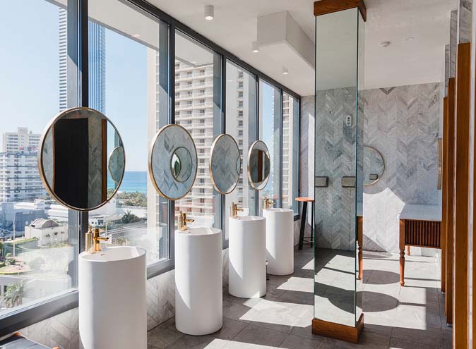 Sitting proud at the front of the Island along Surfers Paradise Boulevard, the all new Goldie’s is an incredibly sophisticated space with raw timber and marble finishings, reminiscent of a vintage Californian beach house. Featuring a fully stocked bar rich in quality wines, beers and cocktails, Goldie’s is the perfect place to mingle with guests, savour the quality food and drinks that the Island has to offer and watch the world go by. The retractable windows that span the length of the room brings the outside in and is centrally located to all other areas of the venue and access points.