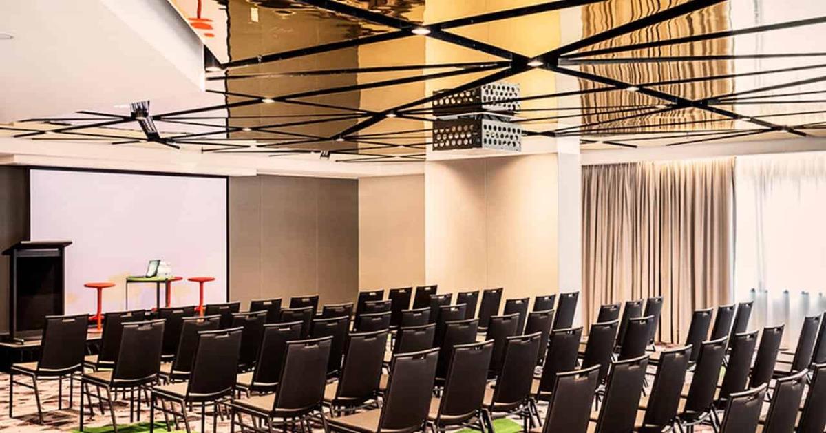 The Pod conference space showcases an abundance of natural light, reflective gold ceiling and caters for up to 120 guests.