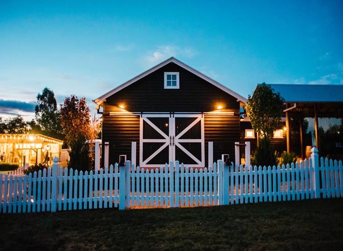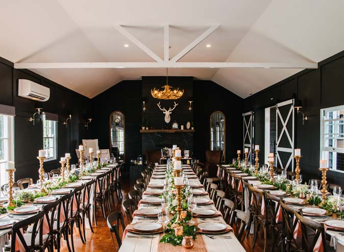 The venue is spread across half an acre on the main street with the stylish Black Hall reception/functions/events area. What was once the Sunday school has now been transformed into a black and white Amish style barn with a stone fireplace and antler chandelier. It can seat just over 70 or is perfect for 85 cocktail style.