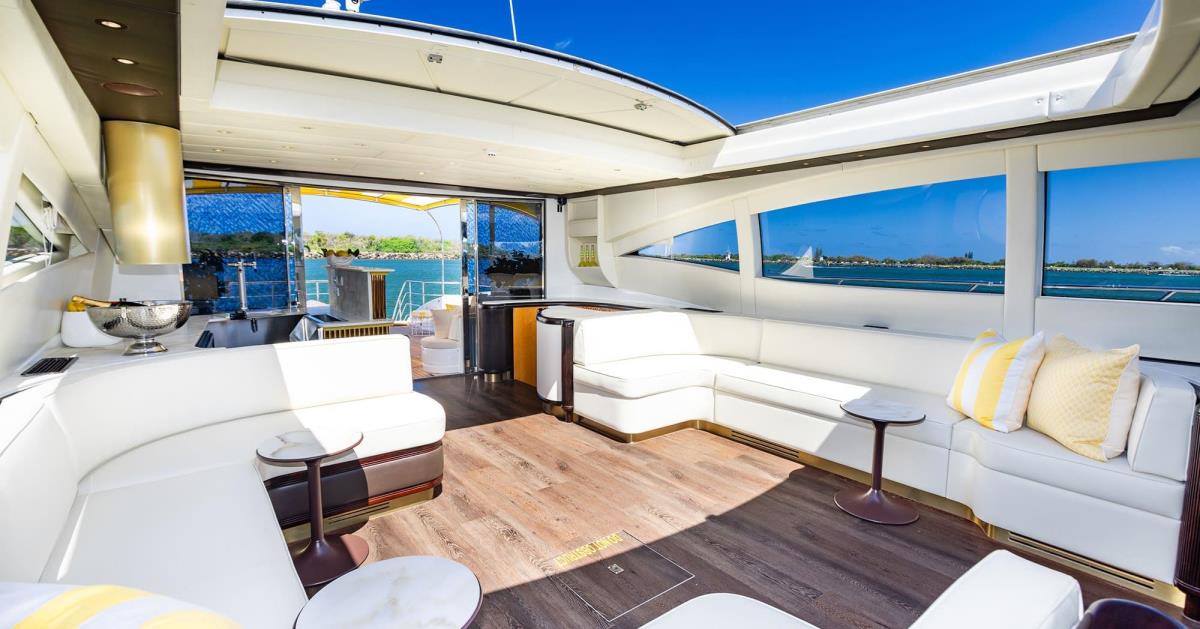 YOT Capri is the crown jewel of our fleet, offering unparalleled luxury and sophistication. Spanning 92 feet, this ultra-glamorous vessel features four stunning entertainment areas across two levels, including the exclusive Capri Lounge Bar. With a retractable roof in the main saloon, guests can bask in the sunshine by day and enjoy elegant comfort by night.