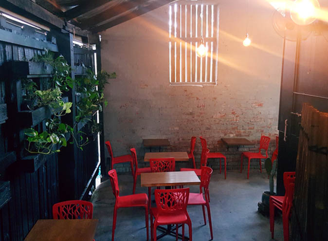The Main Room offers a more formal sitting arrangement with black interior walls, rose gold cutlery, black cushion chairs and benches with graffiti based art décor that will make you feel you are sitting in a very stylish and trendy location.